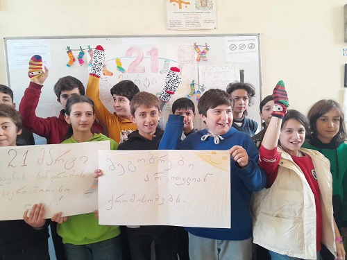 მოსწავლეებმა პლაკატები და კედლის გაზეთები დაამზადეს და ისაუბრეს, თუ რას გულისხმობს დაუნის სინდრომი. ბავშვები ჭრელი წინდების კამპანიაშიც ჩაერთნენ.