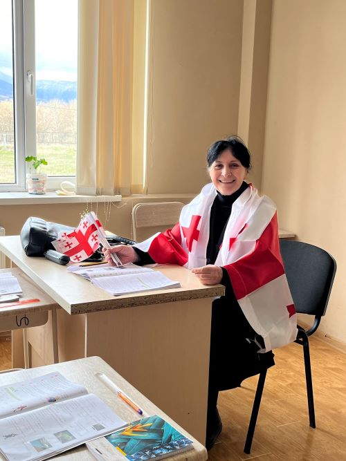პედაგოგი ნაკრების გულანთებულ გულშემატკივართა შორისაა, ის სკოლაში დროშით მივიდა, პატარა დროშები ბავშვებს ჩამოურიგა, დირექტორი ჯუნა ცხოვრებაძე და მთელი სასკოლო საზოგადოება აიყოლია და სკოლა გამარჯვების სიმღერებით აახმაურა.