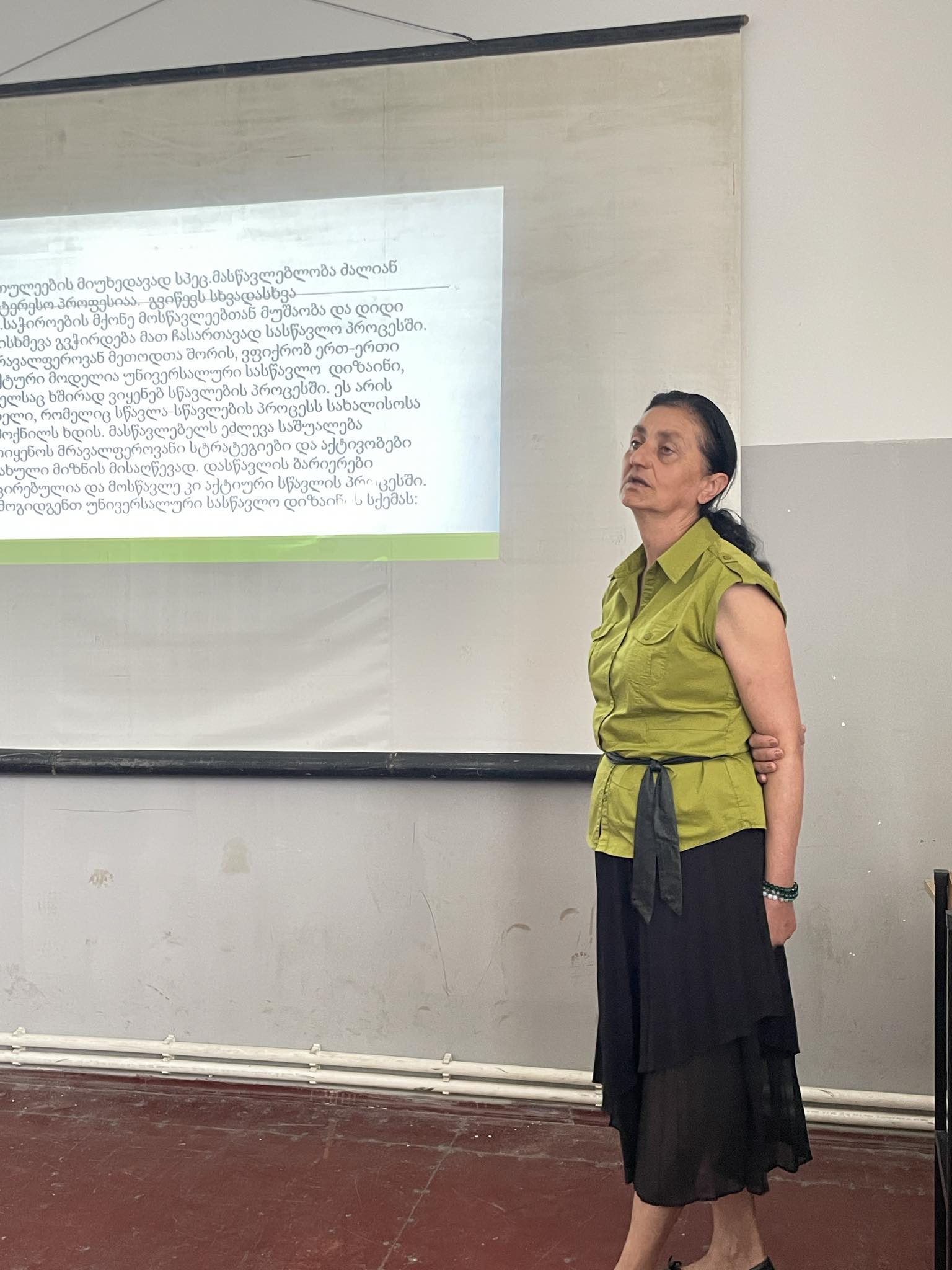 • დარეჯანი ცოფურაშვილი, თემა - უნივერსალური სასწავლო დიზაინის პრინციპებით სწავლების ეფექტურობა სსსმ მოსწავლეებთან;