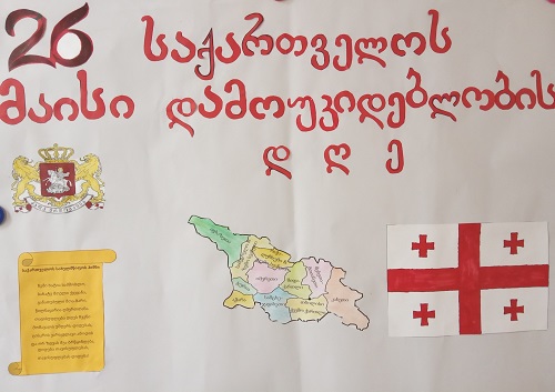 ამჯერად, სკოლის პატარა აღსაზრდელებმა, თავისი მოკრძალებული წვლილი შეიტანეს საქართველოს დამოუკიდებლობის დღისადმი მიძღვნილ ღონისძიებაში, მათ შექმნეს საქართველოს სახელმწიფო სიმბოლიკის ამსახველი თვალსაჩინოება, რომელიც განათავსეს საკლასო სივრცეში.