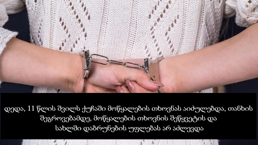 დედა,11 წლის შვილს ქუჩაში მოწყალების თხოვნას აიძულებდა, თანხის შეგროვებამდე, როგორც ზაფხულის სიცხეში, ასევე ზამთრის ცივ და წვიმიან ამინდში, არასრულწლოვანს მოწყალების თხოვნის შეწყვეტის და სახლში დაბრუნების უფლებას არ აძლევდა.