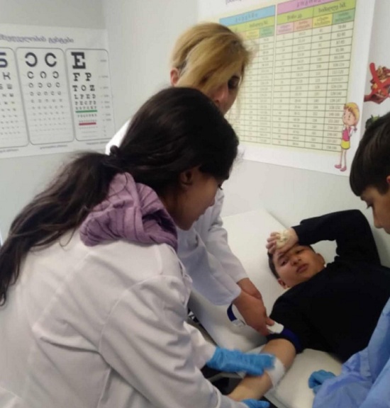 მოსწავლეებმა თეორიული ცოდნა პრაქტიკაში გადაიტანეს და როლური თამაშით პირველადი დახმარების აღმოჩენა ისწავლეს.