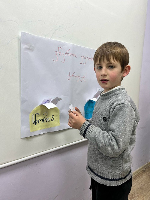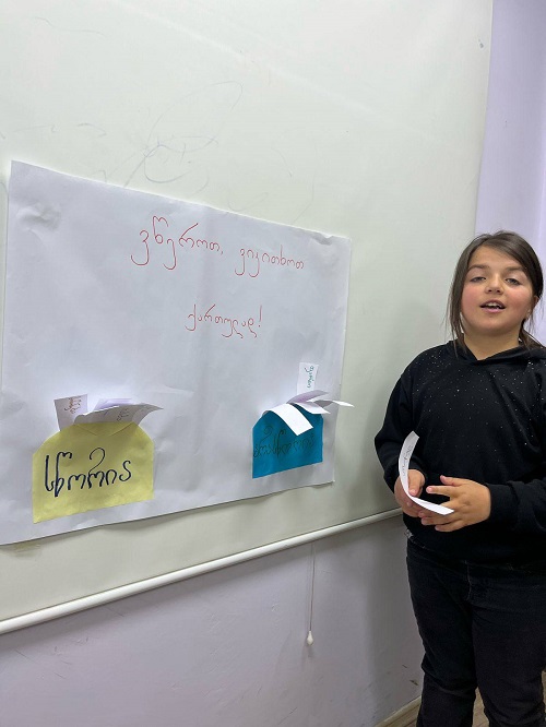 მოსწავლეებისთვის მეტად შემეცნებითი აღმოჩნდა აქტივობა - „ვწეროთ, ვიკითხოთ ქართულად“, სადაც პატარებმა ბარბარიზმების წინააღმდეგ „გაილაშქრეს“.