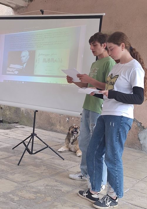 ქართული ენისა და ლიტერატურის მასწავლებელი და სკოლის დირექტორი მთვარისა ახვლედიანი შეკრებილ მოსწავლეებსა და მასწავლებლებს ჯერ თავად ესაუბრა წიგნის როლსა და წიგნიერების მნიშვნელობაზე ჩვენს ცხოვრებაში, შემდეგ კი მეცხრეკლასელმა მოსწავლეებმა - ლუკა მეიშვილმა, თეონა ხეცურიანმა და ნინო ხეცურიანმა წარმოადგინეს შემეცნებითი და საინტერესო პრეზენტაცია, რომელიც მისი დახმარებით მოამზადეს.