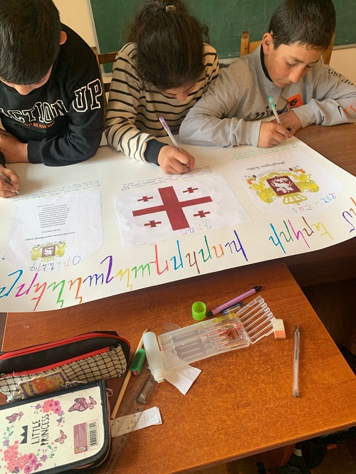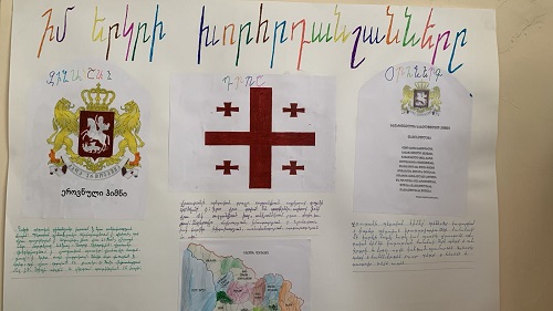 მოსწავლეებმა საქართველოს სახელმწიფო სიმბოლოების - დროშის, გერბის და ჰიმნის შესახებ მეტი ინფომაცია მოიძიეს და პლაკატზე დაიტანეს.