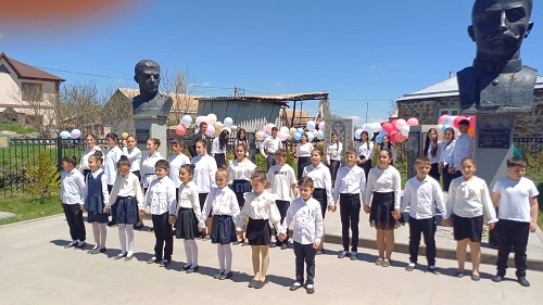 „ალასტანის საჯარო სკოლის მოსწავლეებმა დიდი სამამულო ომის მსხვერპლთა მემორიალთან ფაშიზმთან გამარჯვების 80 წლისთავი აღნიშნეს. მასწავლებელი ვერონიკა იეროიანი.