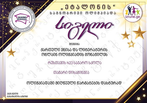 საგნობრივი ჩემპიონატის ფარგლებში, უკვე გაიმართა ქართული ენა/ლიტერატურისა და ლოგიკური აზროვნების და ზოგადი განათლების ოლიმპიადები, რასაც დიდი მონდომებით შეუერთდა რუსთავის N23 საჯარო სკოლის მოსწავლე თამარი დიხამინჯია.