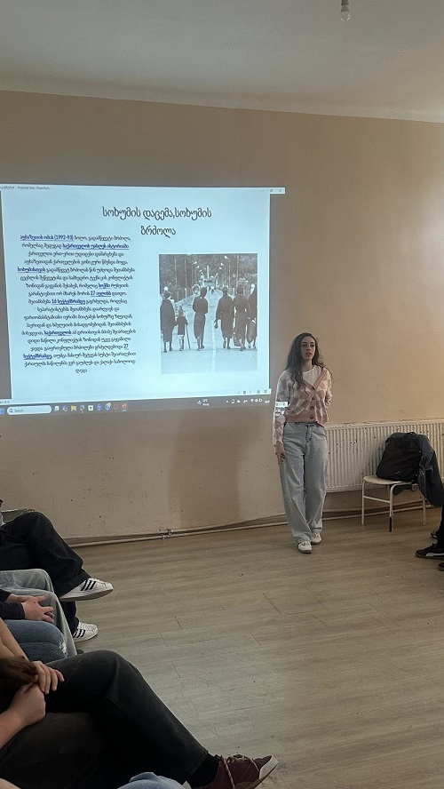 გაკვეთილის ფარგლებში მოსწავლეებმა წარმოადგინეს პრეზენტაციები, სადაც მიმოხილული იყო: ომის დაწყების წინაპირობები, ისტორიული გარემოებები და შედეგები, რომლებმაც მძიმე კვალი დატოვეს საქართველოს თანამედროვე ისტორიაში.