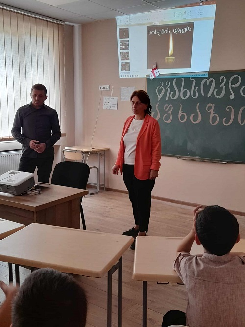„როგორც მოგეხსენებათ ჩვენი სკოლა გელა ბელაუსოვის სახელობისაა, ის ჩვენი სოფლის მკვიდრი იყო და ყოველ წელს ვიხსენებთ მის გმირობებს. მინდა, რომ მომავალ თაობას მუდამ ახსოვდეს და უკდავყონ აფხაზეთში დაღუპული ჩვენი სახელოვანი გმირების სახელები. გვაქვს შესაბამისი სტენდიც, აშღანისნავია, რომ აუცილებლად გავდივართ საფლავზე, პატივს მივაგებთ დაღუპულ გმირს და ყვავილებით ვამკობთ. ეს უკვე სკოლას ტრადიციციაა და მიხარია, რომ ბავშვები ყოველთვის აქტიურად ერთვებიან ან ღონისძიებაში, ტკივათ, განიცდიან და ამაყობენ ჩვენი გმირებით“, - აღნიშნავს სკოლის დირექტორი.