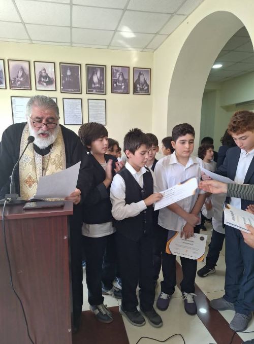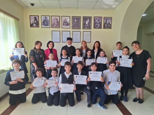 ახლაც, პარაკლისის შემდეგ სკოლა-გიმნაზის დირექტორმა - დეკანოზმა მირიან სამხარაძემ გიმნაზიის მოსწავლეებს ქართულ ენასა და ლიტერატურაში, მათემატიკასა და ინგლისურ ენაში, ოლიმპიადა „კინგსის “ საგაზაფხულო სეზონში წარმატებული მონაწილეობის დამადასტურებელი სერტიფიკატები და დიპლომები გადასცა.