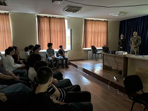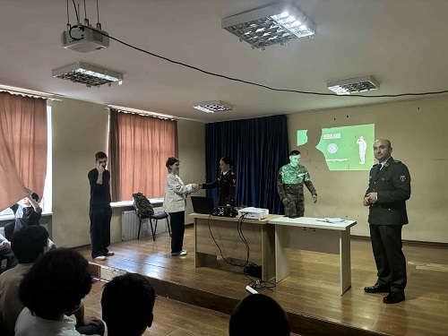 სამხედრო მოსამსახურეებმა სკოლის მოსწავლეებს გააცნეს თავდაცვის ძალების შემადგენლობა და სტრუქტურა, არსებული სიახლეები, სამსახურის ფორმები და თავდაცვის ძალებში არსებული სხვადასხვა სოციალური პირობები.