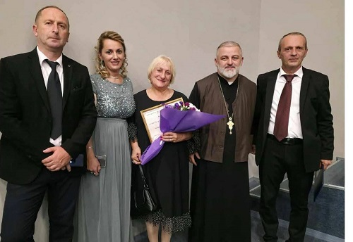 სკოლაში ახარებთ პედაგოგის წარმატება. ჩაქვის წმინდა კეთილმორწმუნე მეფე დავითის სახელობის სკოლა-გიმნაზიის დირექტორი დეკანოზი დანიელი მას დამსახურებული ჯილდოს მიღებას ულოცავს.