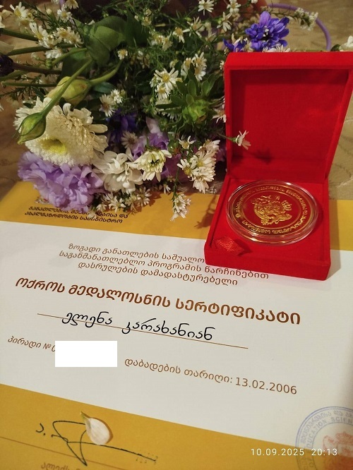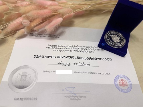 ღონისძიებაზე 2023-2024 სასწავლო წლის წარჩინებულ კურსდამთავრებულებს კუთვნილი მედლები გადაეცათ.