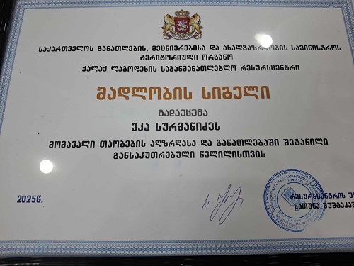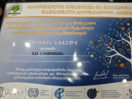 ის მასწავლებლის დღის ფარგლებში გამართულ ღონისძიებაზე საზეიმოდ დაჯილდოვდა.