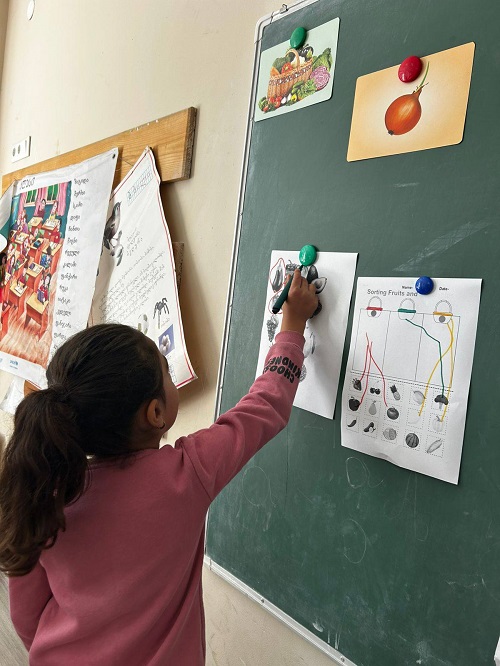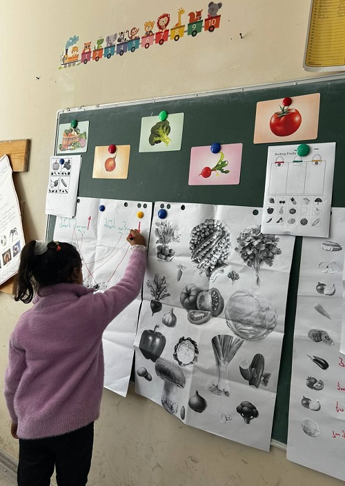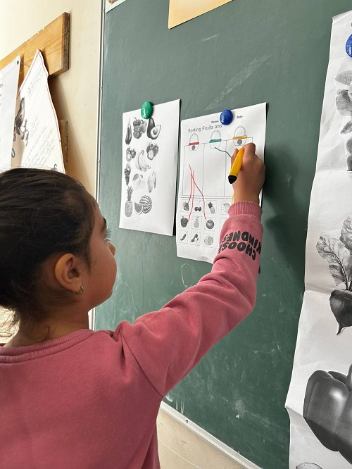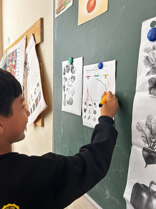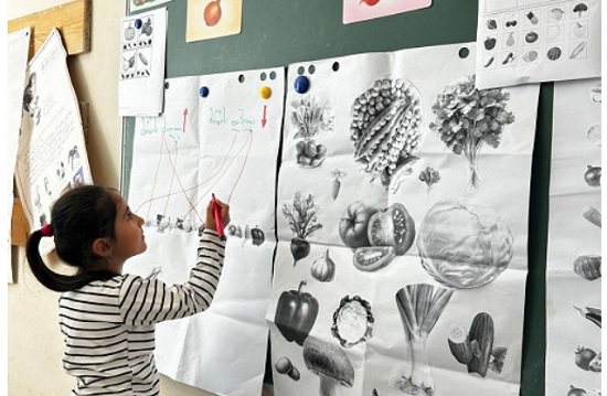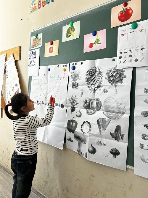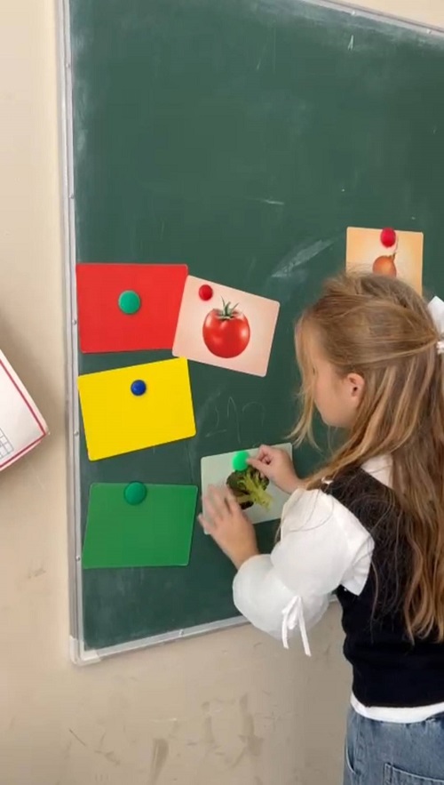 ბავშვებმა ფერების მიხედვით დაალაგეს ბოსტნეული, დამარცვლეს სიტყვები, მიუწერეს მარცვლების რაოდენობა და გააცალკევეს - მიწის ზემოთ და მიწის ქვეშ მზარდი ბოსტნეული