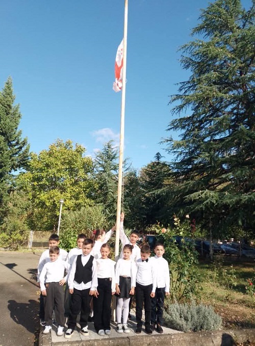 ტრადიციულად, საქართველოს ჰიმნის ფონზე, მოსწავლეებმა აღმართეს სახელმწიფო დროშა.