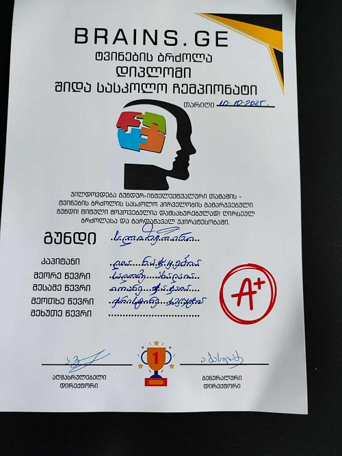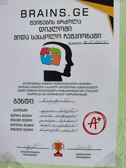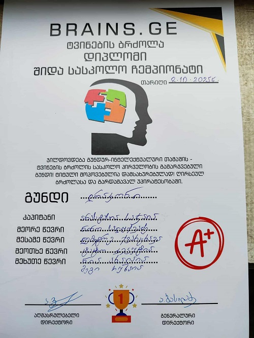 ახლახან, სკოლაში გუნდური ინტელექტუალური თამაშის - „ტვინების ბრძოლის“ შიდასასკოლო ჩემპიონატი ჩატარდა.