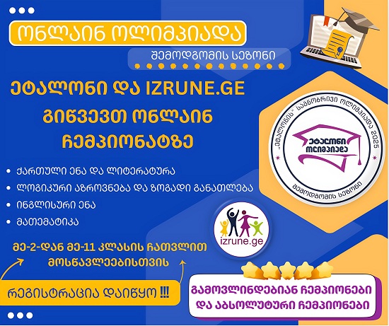 წარმატების გზა გრძელდება და საგნობრივი ონლაინ ჩემპიონატი, რომელიც „ეტალონმა“ და izrune.ge-მ II-XI კლასების მოსწავლეებს გაზაფხულზე შესთავაზეს, შემოდგომის სეზონით ბრუნდება!