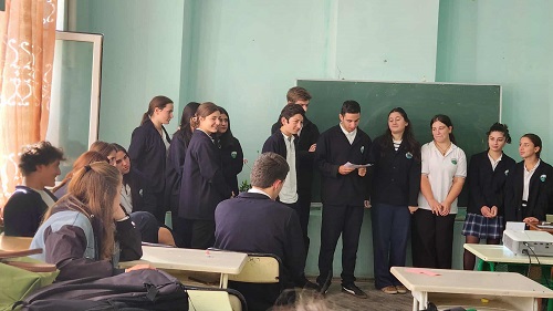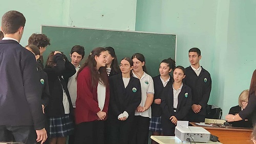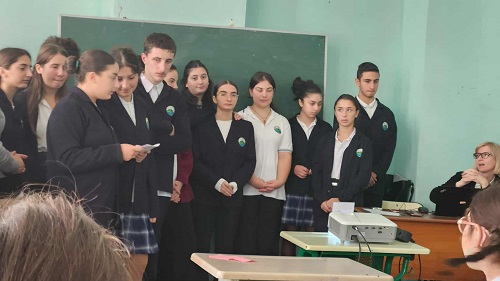 სკოლაში მადლობას უხდიან პროექტის წარმომადგენლებს სტუმრობისთვის.