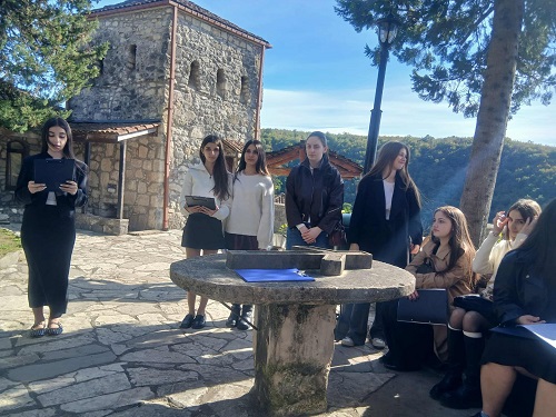 მოსწავლეებმა საკვები პროდუქტები და საჭირო საყოფაცხოვრებო ნივთები მიუტანეს მონასტერში მოღვაწე ბერებს, გაესაუბრნენ მათ. მამა ნეოფიტემ საინტერესოდ აუხსნა მათ, როგორია ბერული ცხოვრების ყოველდღიურობა, რატომ სჭირდებათ სულიერი და ფიზიკური სიმტკიცე, რათა მთელი ძალისხმევით ემსახურონ უფალს, დასმულ შეკითხვებს გასცა ამომწურავი პასუხები, დალოცა ყველანი და აცხო წმინდა ზეთი.