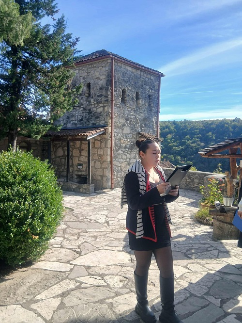 პედაგოგმა აზა ჯამბურიძემ გააცოცხლა მონასტრის დაარსების ხალხური თქმულება და წაიკითხა საინტერესო ლექსი, მიძღვნილი წმინდა მოწამე დავით და კონსტანტინე მხეიძეების მიმართ.