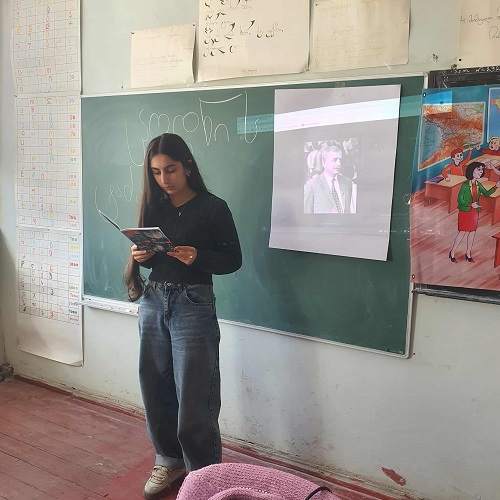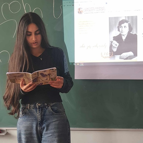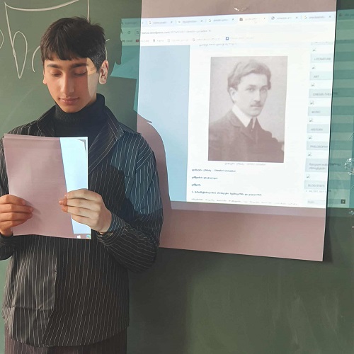 მე-12 კლასის მოსწავლეებმა სასკოლო საზოგადოების წინაშე წარმოადგინეს პრეზენტაცია თბილისის სახელმწიფო უნივერსიტეტის შესახებ.