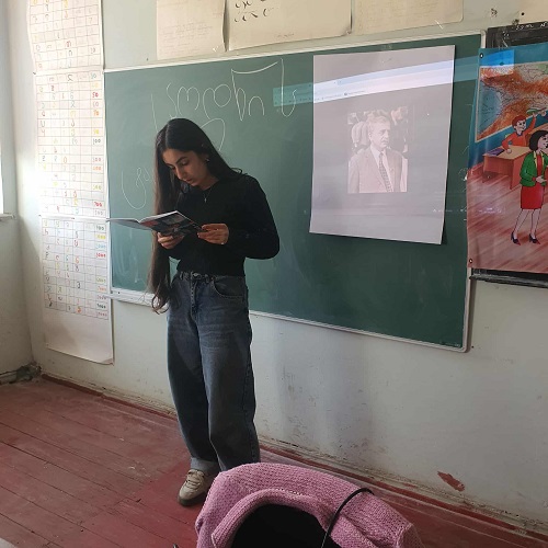 მოსწავლეებმა ასევე ისაუბრეს უნივერსიტეტის პირველი კურსდამთავრებულების - ზვიად გამსახურდიას, მზექალა შანიძის, ანა კალანდაშის, გია დვალისა და ზაირა არსენიშვილის შესახებ.