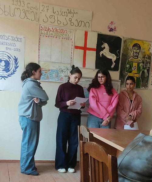 მოსწავლეებმა, მასწავლებლების დახმარებითა და ხელმძღვანელობით, საყოველთაო მშვიდობის უზრუნველყოფისა და სახელმწიფოთა თანამშრომლობის საერთაშორისო ორგანიზაციის შესახებ ინფორმაცია მოიძიეს და საინტერესო პრეზენტაცია გამართეს.