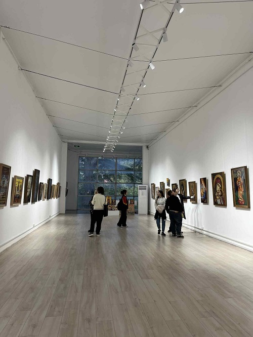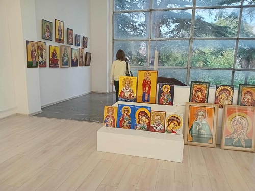 მოსწავლეები ათვალიერებდნენ გამოფენას, ხედავდნენ ხელოვანის სულის ნაწილს, რომელიც თითოეულ ხატშია ასახული.