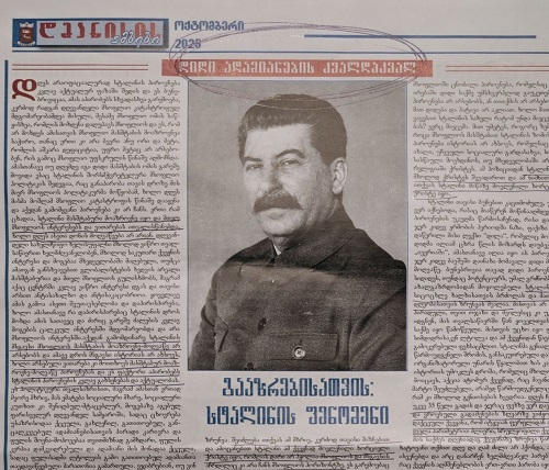ფოტოზე ჩანს სტატია სტალინზე, სადაც ვკითხულობთ, რომ იგი „იყო ხორცილი ქრისტე, რომლის დარიც არ ჰყოლია მსოფლიოს“...
