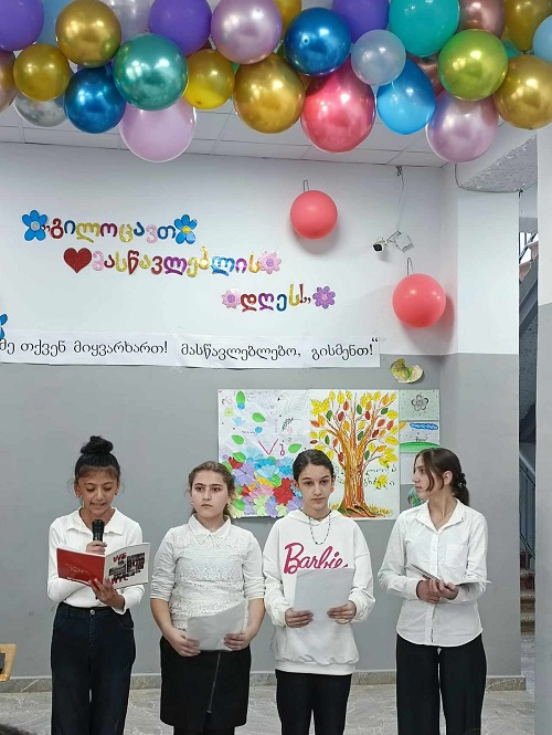 მოსწავლეებმა ლექსებით, სიმღერებითა და გულთბილი სიტყვებით ხოტბა შეასხეს მასწავლებლის პროფესიას და საყვარელ პედაგოგებს მათ აღზრდა-განათლებაში ჩადებული შრომისა და ამაგისთვის მადლობა გადაუხადეს.