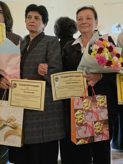 სკოლის დირექციამ გულთბილად მიულოცა მასწავლებლის ეროვნული დღე ღვაწლმოსილ პედაგოგებს, მადლობა გადაუხადა მათ სასწავლო პროცესში მრავალწლიანი წარმატებული მოღვაწეობისთვის, განათლების სფეროში შეტანილი განსაკუთრებული წვლილისთვის, პროფესიონალიზმის, თავდადებისა და პასუხისმგებლობისთვის და სიმბოლურად გადასცა მცირე ფასიანი საჩუქრები.
