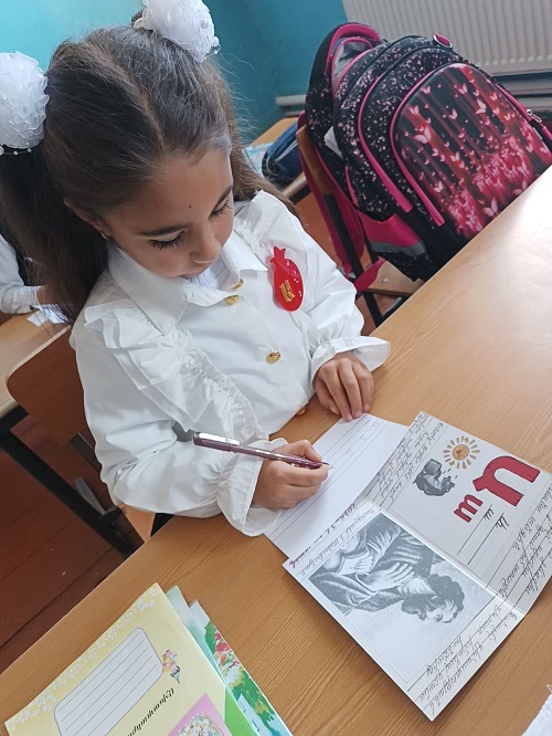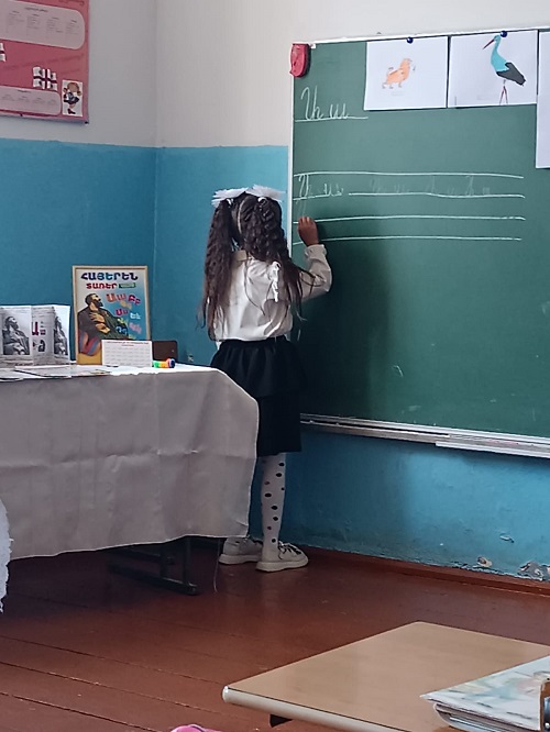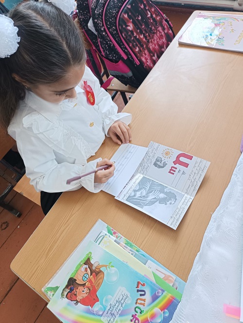 მოსწავლეებს წიგნიერების სამყაროში სომხური ენის მასწავლებელი გერმინე ტონაკანიანი შეუძღვა, საინტერესო ღია გაკვეთილი ჩაატარა და ბავშვები არაერთ სახალისო თუ საინტერესო აქტივობაში ჩართო. ბავშვებმა პირველი ასო-ბგერა ხალისით მოხაზეს, იაქტიურეს და ცოდნა და შესაძლებლობები წარმატებით წარმოაჩინეს.