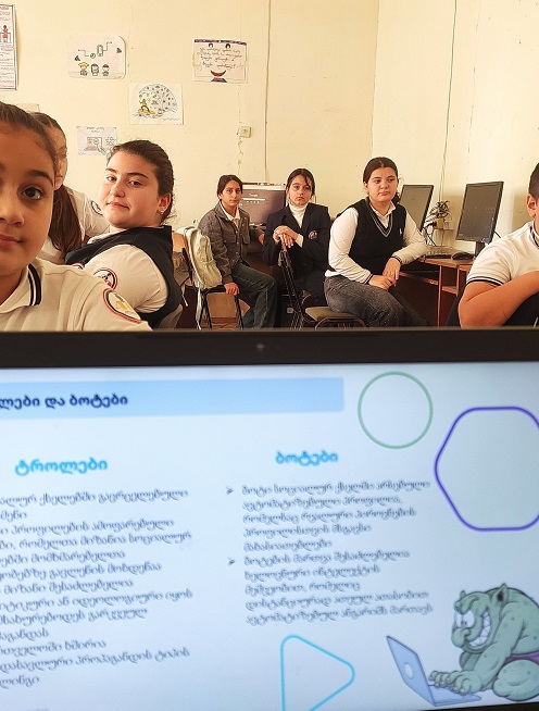 გაკვეთილის განმავლობაში მოსწავლეებმა განიხილეს ისეთი თემები, როგორებიცაა რეკლამების გავლენა, ფეიკნიუსების ამოცნობა, დაკლიკების ეფექტი, ტროლებისა და ბოტების მოქმედება, ფოტომანიპულაციები.