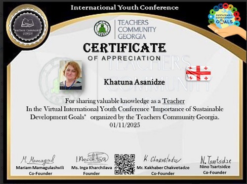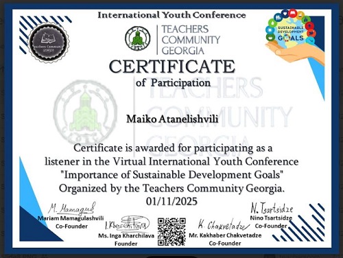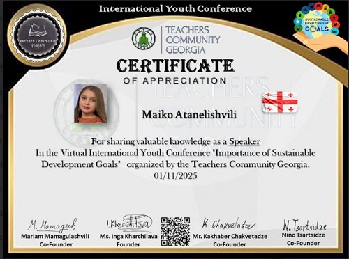 ჩვენი სკოლის მე- 6 კლასის მოსწავლე მაია ათანელიშვილი და კომპიუტერული ტექნოლოგიის პედაგოგი ხათუნი ასანიძე მონაწილეობდნენ 1-ელ ნოემბერს გამართულ საერთაშორისო ონლაინ კონფერენციაში.