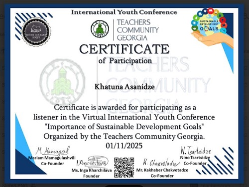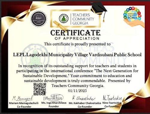 ლაგოდეხის მუნიციპალიტეტის სოფელ ვარდისუბნის საჯარო სკოლა აქტიურადაა ჩართული Teachers Community Georgia-ს მიერ ორგანიზებულ საერთაშორისო კონფერენციაში - „მომავლის თაობა მდგრადი განვითარებისთვის“.