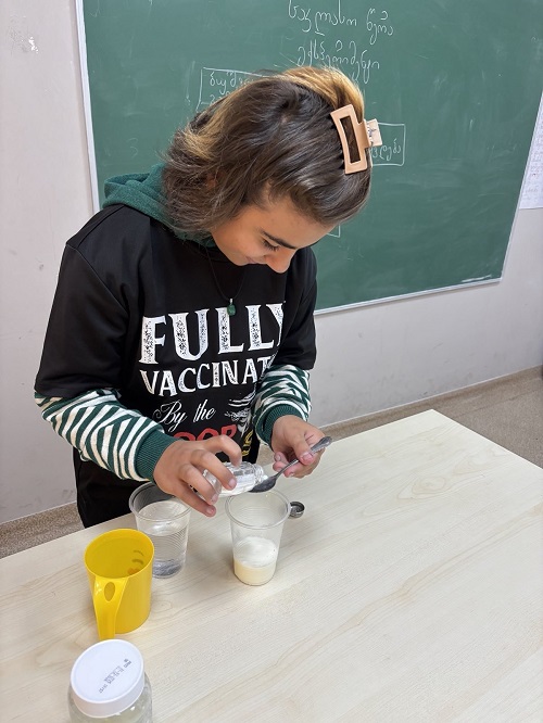 აღსანიშნავია, მე-6 კლასში ჩატარებული საინტერესო და მეტად შემეცნებითი გაკვეთილი. მე-6 კლასელმა ჩაატარა საინტერესო ექსპერიმენტი. ექსპერიმენტის მონაწილეები დააკვირდნენ, როგორი ნივთიერებები გამოიყენეს და რა რეაქცია მიმდინარეობდა მათ შორის.