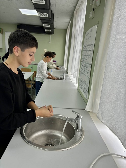 პირველ შეხვედრაზე მოსწავლეებმა ისწავლეს ხელების სწორად დაბანა, გაეცნენ პირველადი დახმარების ნივთებს და ისაუბრეს ჰიგიენის მნიშვნელობაზე.