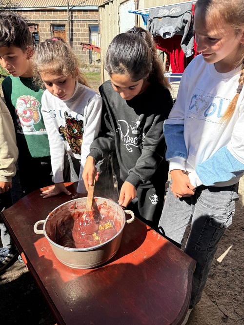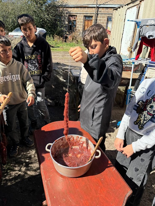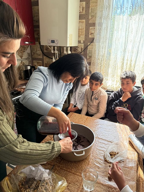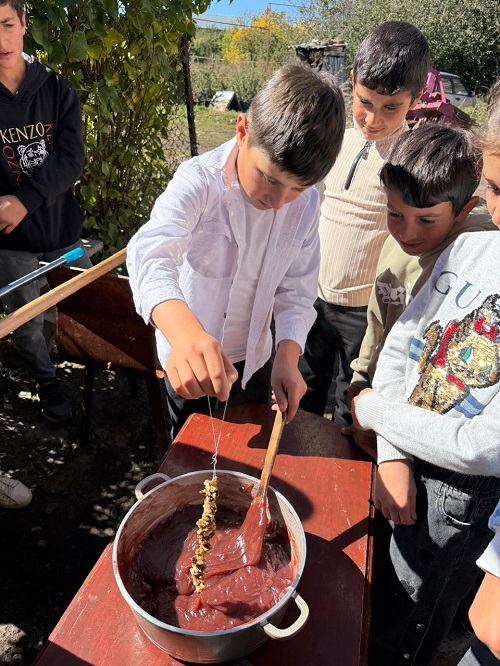 პატარებმა ისწავლეს, როგორ ამზადებდნენ ჩვენი წინაპრები საშემოდგომო მოსავლისგან ტრადიციულ ნუგბარს და თავადაც პრაქტიკულად სცადეს - ბავშვებმა ჩურჩხელები საკუთარი ხელით ამოავლეს.