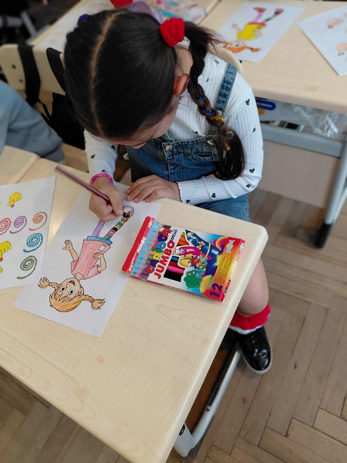 გაკვეთილის ერთ-ერთი ყველაზე შთამბეჭდავი და ხალისით სავსე ნაწილი იყო ის მომენტი, როდესაც ბავშვები კლასში პეპი გრძელწინდას კოსტიუმებში გამოჩნდნენ. მოსწავლეებმა საკუთარი ინიციატივით მოირგეს: ვარცხნილობა, ერთმანეთისგან განსხვავებული წინდები, ფერადი, მხიარული კაბები, ხოლო სახეზე - ჭორფლები და კეთილი ღიმილი, კლასი ერთი შეხედვით ჩვეულებრივი ოთახი იყო, მაგრამ იმ წუთებში გადაიქცა ლინდგრენის სამყაროდ - მხიარულ, თავისუფალ და ფანტაზიით სავსე სივრცედ. ბავშვები თავად გრძნობდნენ, რომ პატარა მსახიობები იყვნენ - რომ ზედმეტად ხმამაღალიც შეიძლებოდა ყოფილიყვნენ, ზედმეტად გაბედულიც და ზედმეტად მხიარულებიც - სწორედ ისე, როგორც პეპი იყო. ამ გამოცდილებამ ბავშვებს მზაობა და თავისუფლება მისცა, სიტყვიერადაც და ემოციურადაც მიახლოებოდნენ პერსონაჟს, გაეაზრებინათ მისი ხასიათი და შეეფასებინათ, რატომ უყვართ მათ პეპი. კოსტიუმებმა გაკვეთილს არა მხოლოდ სიხარული შემატა, არამედ წარმოაჩინა, რომ სწავლა შეიძლება იყოს თამაშიც, თეატრიც, ფანტაზიაც და შემოქმედებაც ერთად.