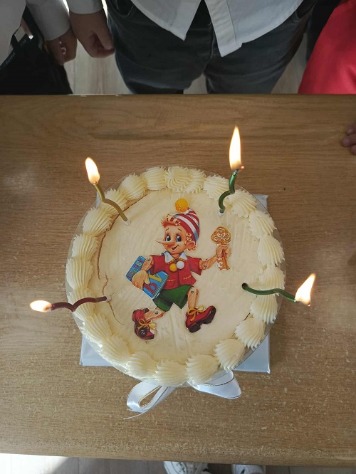 მოსწავლეებისთვის განსაკუთრებული აღმოჩნდა პედაგოგ ლუიზა ცერცვაძის სიურპრიზი - მან მოსწავლეებს მიართვა პინოქიოს გამოსახულებიანი ლამაზი ტორტი.