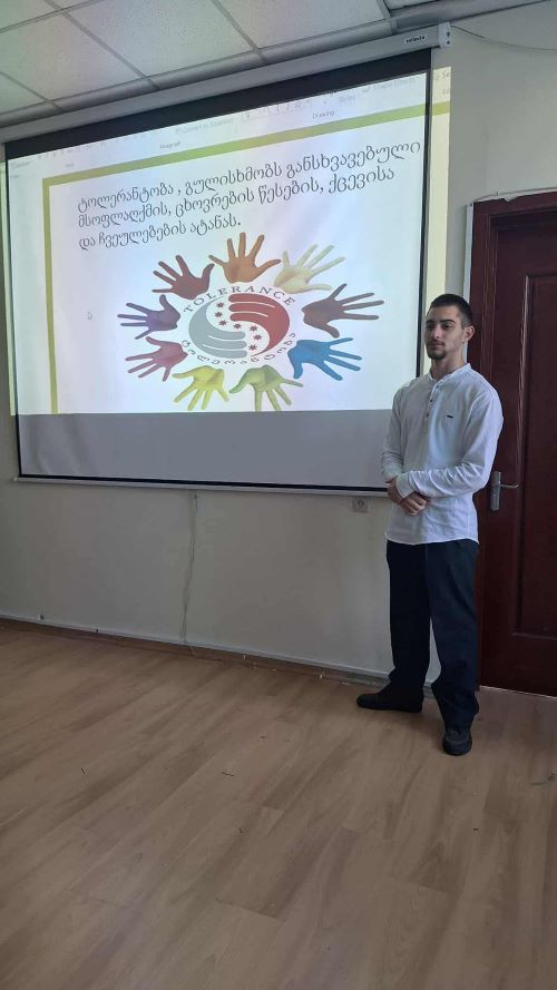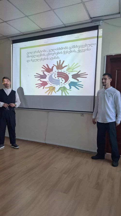 მოსწავლეებმა ნახეს დოკუმენტური ფილმი „ტოლერანტობა საქართველოში“ და იმსჯელეს საქართველოში არსებულ ტოლერანტულ გარემოსა და ტრადიციებზე.