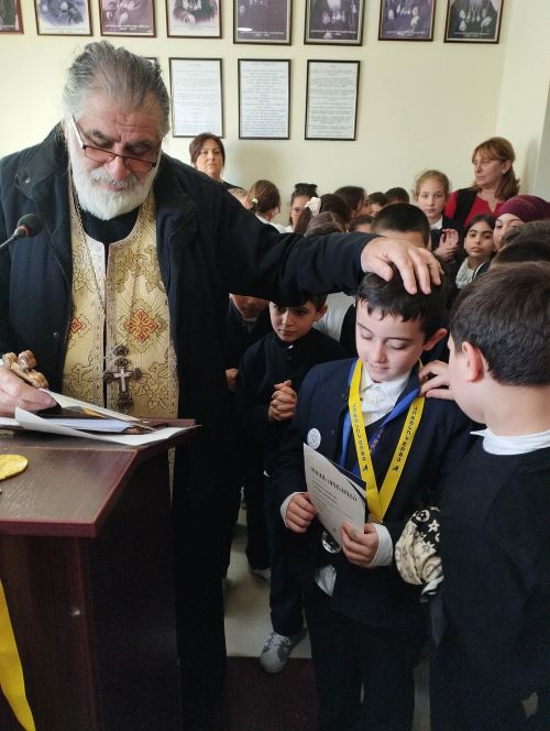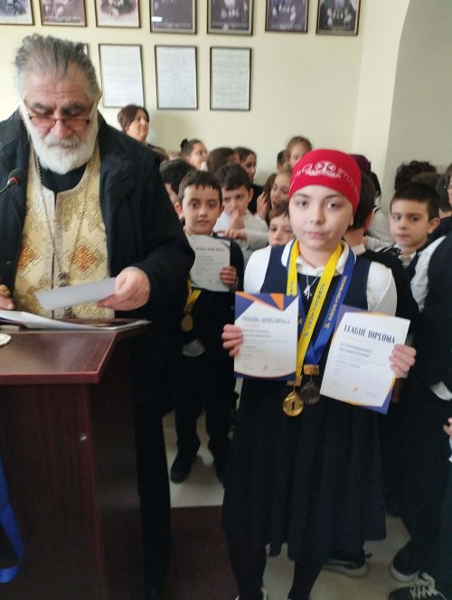 სკოლ-გიმნაზიაში, ღვთისმშობლის პარაკლისის შემდეგ, გიმნაზიის დირექტორმა, დეკანოზმა მირიან სამხარაძემ ოლიმპიადა „კინგსის“ ქართული ენისა და ლიტერატურისა და უცხო ენის ლიგაში გამარჯვებულ მოსწავლეებს: მე-4 კლასელ ქეთევან ბრეგვაძეს, მე- 5 კლასელ გიორგი იმერლიშვილს და მე-3 კლასელ გაბრიელ ხუბულავას - დიპლომები და სერტიფიკატები, ასევე ოქროს, ვერცხლისა და ბრინჯაოს მედლები გადასცა.