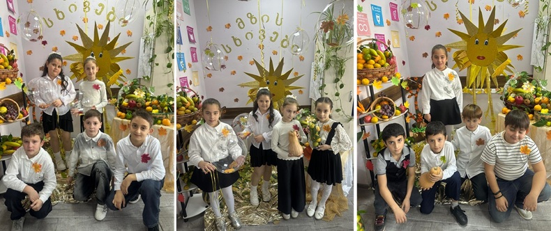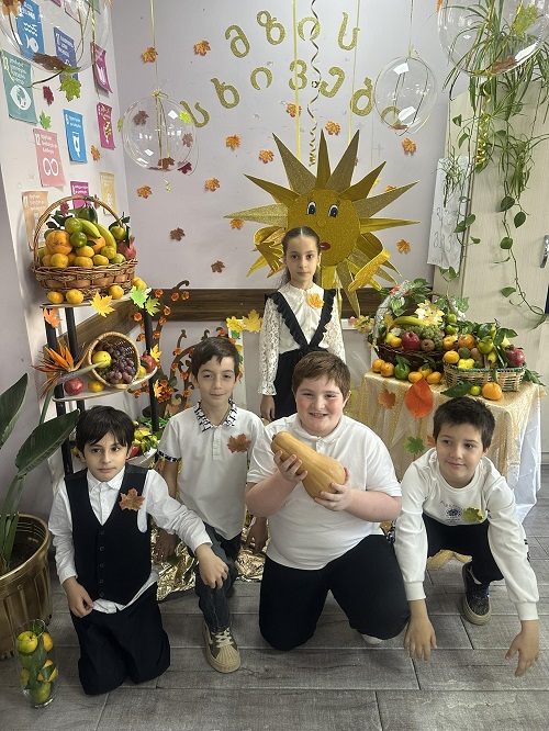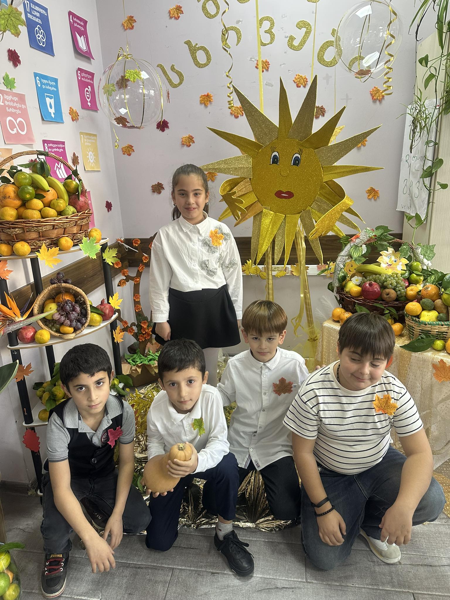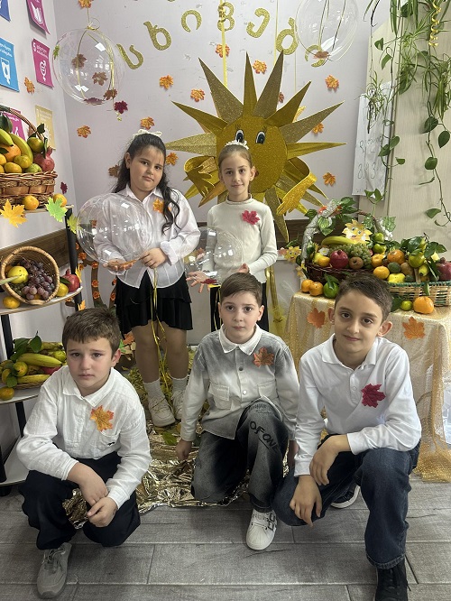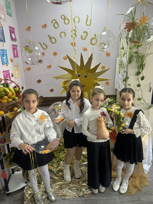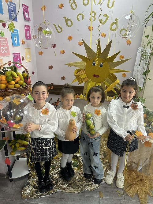 მოსწავლეებმა საკუთარი ნამუშევრები დაამშვენეს ფერადი ფოთლებით, ნაყოფითა და შემოქმედებითი ელემენტებით, რამაც კლასში თბილი, ხალისიანი და სასიამოვნო გარემო შექმნა.