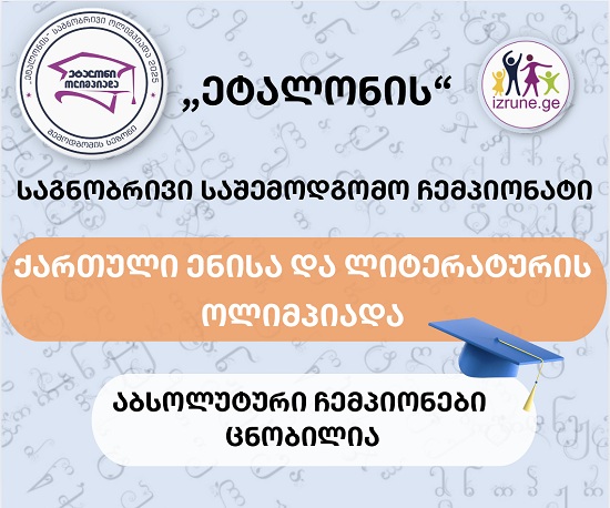 „ეტალონის“ და izrune.ge-ს ერთობლივი საგნობრივი ოლიმპიადების შემოდგომის სეზონი ქართული ენის და ლიტერატურის ოლიმპიადით დაიწყო, რომელიც 18 და 19 ნოემბერს ონლაინ რეჟიმში izrune.ge-ს ტექნოლოგიური პლატფორმის გამოყენებით გაიმართა.