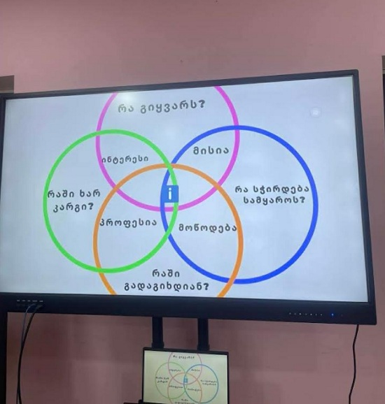 მე-9 კლასელებმა ასევე ნახეს ფილმი პროფესიათა მახასიათებლების შესახებ. ბოლოს გაკვეთილის შეჯამების მიზნით გაიმართა დისკუსია და დაიგეგმა სხვადასხვა პროფესიის ადამიანებთან შეხვედრა, დაითქვა თაიღიც.