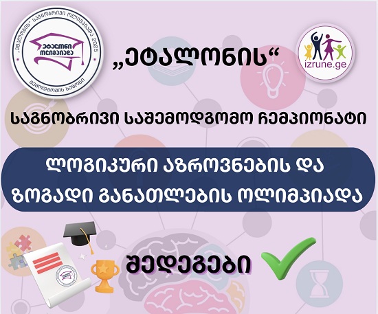 არაფორმალური განათლების პროექტების ფლაგმანი „ეტალონის“ და izrune.ge-ს ერთობლივი საგნობრივი ოლიმპიადები ლოგიკური აზროვნების და ზოგადი განათლების ოლიმპიადის გაგრძელდა. ოლიმპიადა 25 და 26 ნოემბერს ონლაინ რეჟიმში izrune.ge-ს ტექნოლოგიური პლატფორმის გამოყენებით გაიმართა.