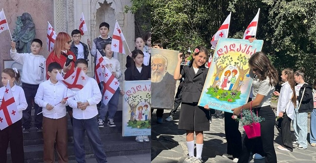მთაწმინდის მწერალთა და საზოგადო მოღვაწეთა პანთეონში ბავშვებმა პატივი მიაგეს დიდი მამულიშვილების სამუდამო ადგილსამყოფელს.