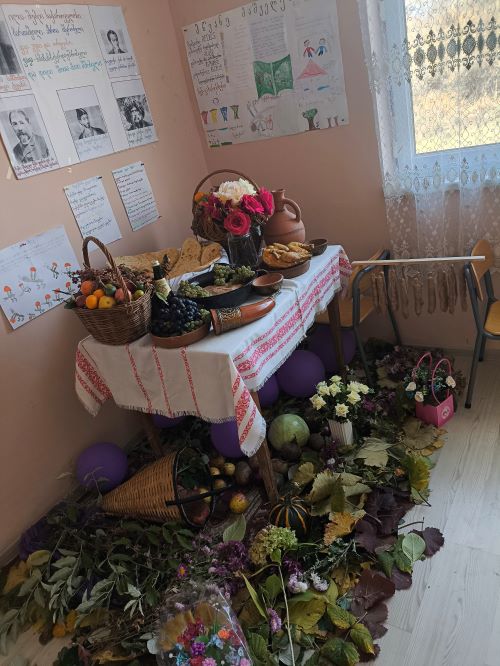 მათ კლასში ლამაზი, შემოდგომის კუთხე მოაწყვეს, რომელიც ამ სეზონისათვის დამახასიათებელი ხილით მორთეს.