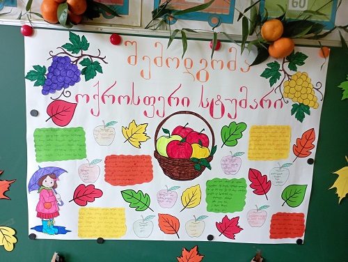 დაწყებითი კლასების მოსწავლეებმა მასწავლებლების - რუსუდან მებონიას, ნატო კაკაჩიას, ნათია ნანეიშვილის, რუსუდან კონჯარიას, ესტერ როგავასა და ნანი მესხიას ხელმძღვანელობითა და მშობლების თანადგომით, შემოდგომის პეიზაჟებით გალამაზებულ გარემოში წარმოადგინეს ლიტერატურული დილა - „ნახვამდის, ოქროსფერო, ბარაქიანო შემოდგომავ“.